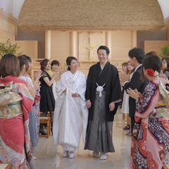 二人は八百万の神々よりの祝福を享け、永遠の愛を誓う。